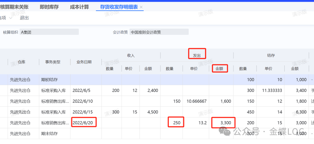 三、实例演算为直观展示先进先出法的计算过程,采用以下业务数据在系统进行模拟: 上表的最终期末结存数量为:100 + 200 - 150 + 300 - 250 = 200个。那么我们来看下发出的单价是如何取的。 先进先出法库存流水账 先进先出法假定先入库的存货先发出,因此发出成本按最早入库的价格计算(结合上面表格)。