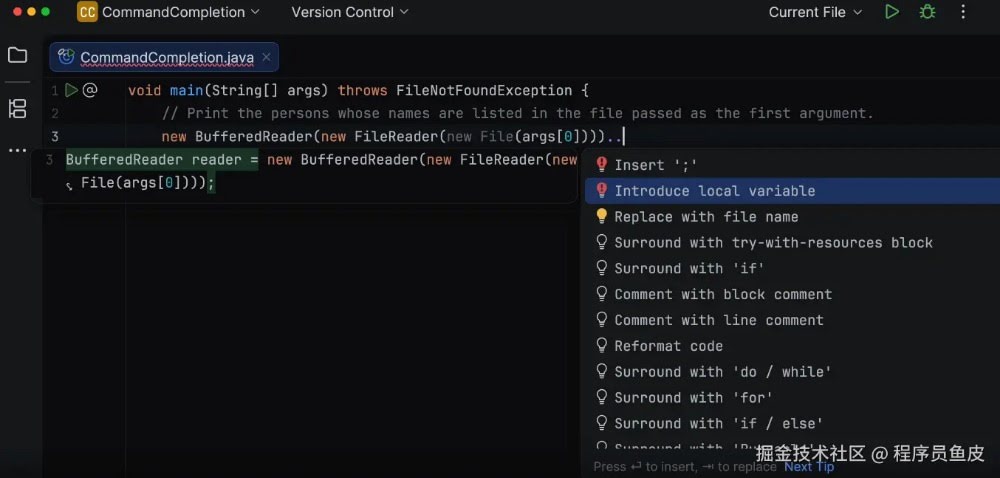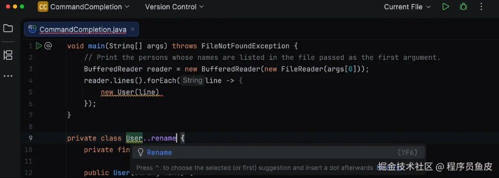 可能有同学会问,以前在 IDEA 里按 . 不就有代码补全吗?这个命令补全和以前有什么区别?