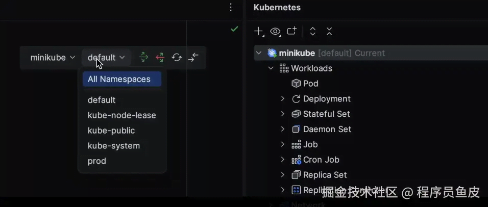 顶部有集群和命名空间选择器让你保持上下文,实时资源状态图标让你快速发现问题。