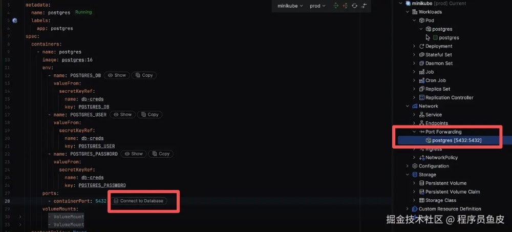 可以使用编辑器内的 secret 管理保护服务设置,直接从 YAML 查看和复制数据库凭据。