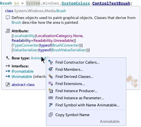• 支持搜索和过滤功能,快速定位到命名空间、类型和成员。