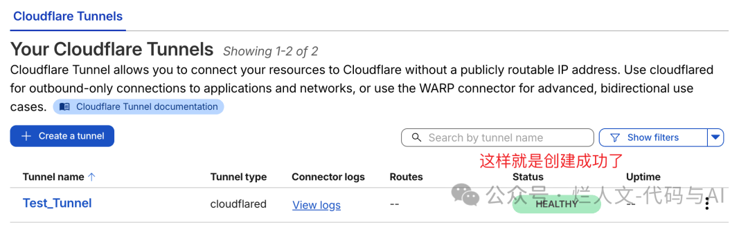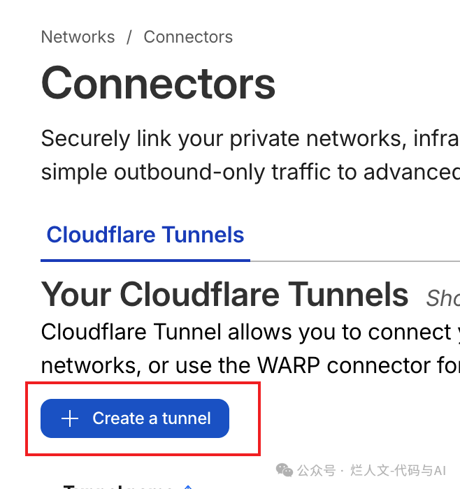 点击 Create a tunnel 按钮开始创建。