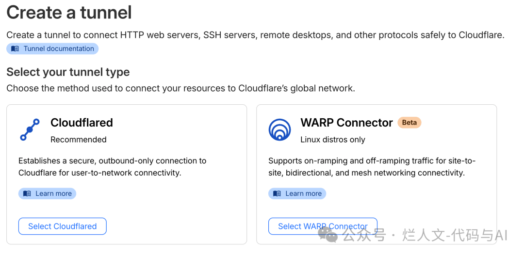 选择 Cloudflared。这是最常见的做法,适合把本地服务挂出去。