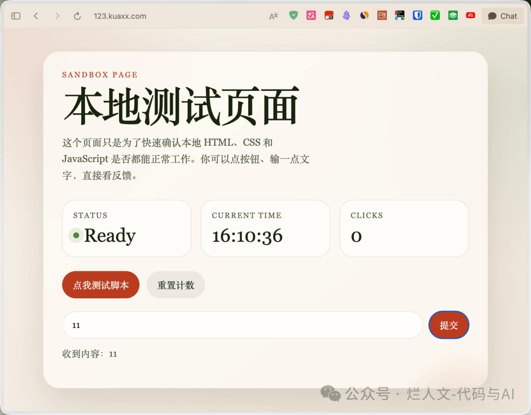 - 用浏览器打开你刚才配置的域名。能看到本地服务页面,就说明已经通了。