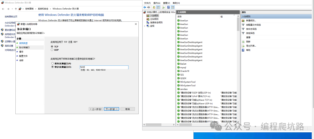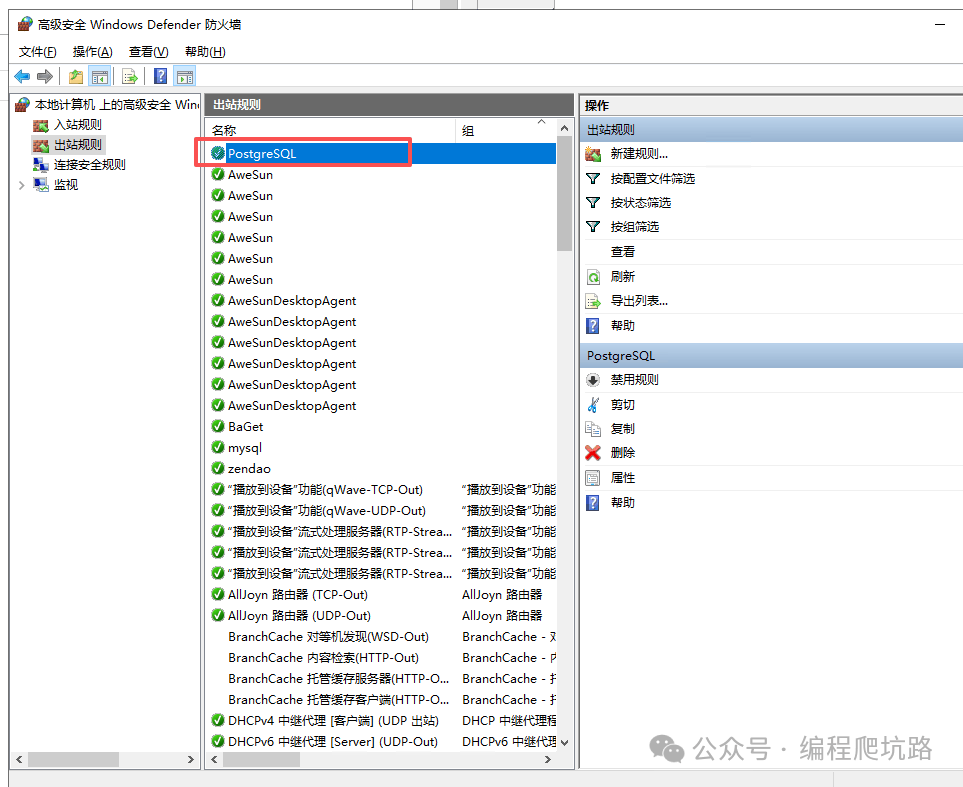 4. 4. 允许连接 → 下一步 → 名称填:PostgreSQL