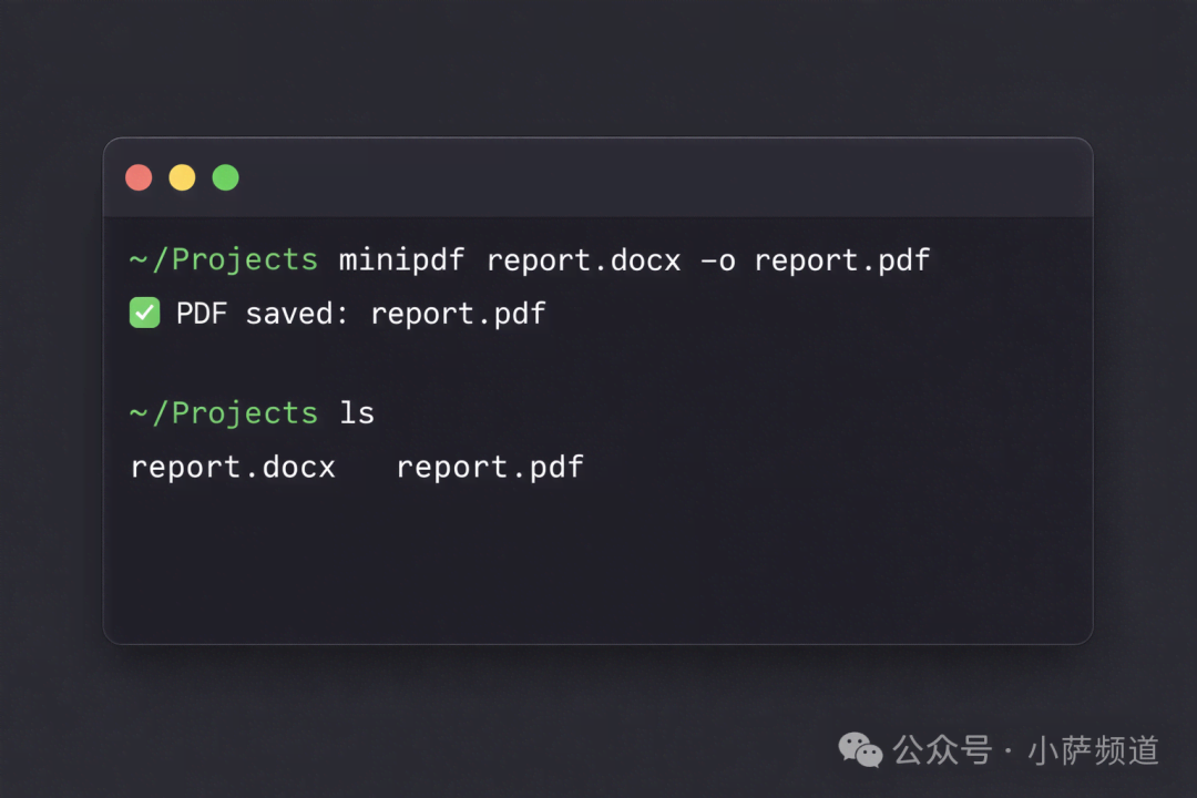 minipdf report.docx -o /path/to/output.pdf
