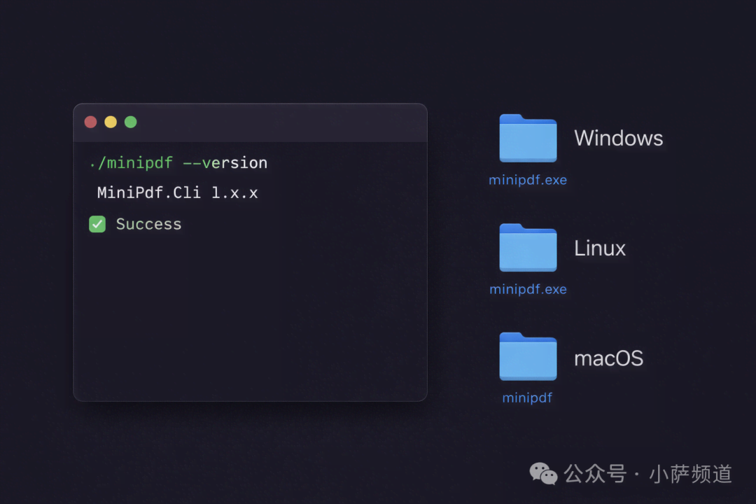 MiniPdf.Cli 支持 Native AOT 编译,直接生成各平台的原生可执行文件。