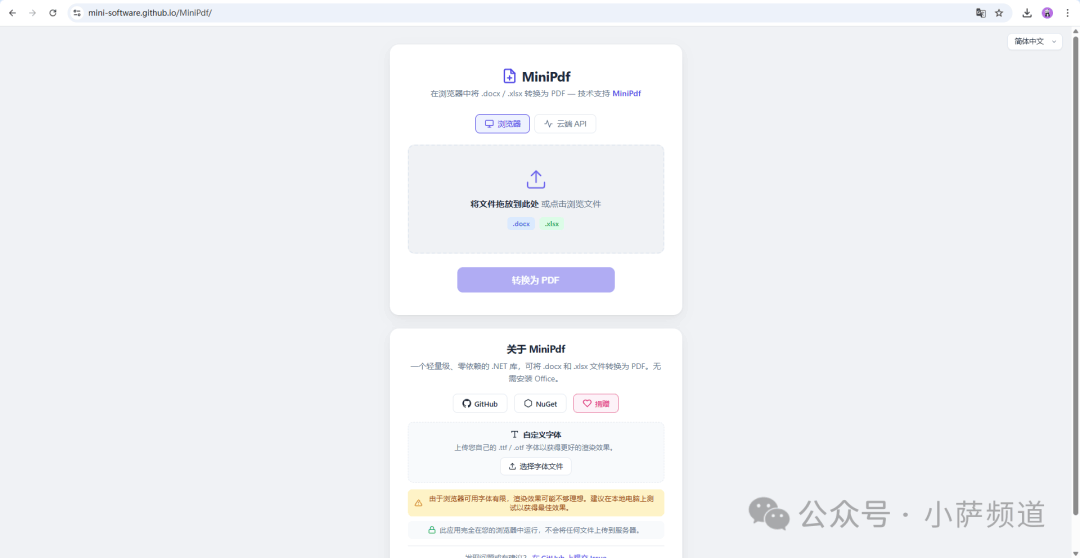 最近发现一个 .NET 库叫 MiniPdf,干的就是这件事——不用装任何外部组件,一行代码搞定 Office 文件转 PDF
