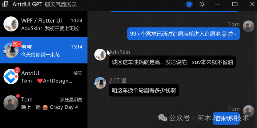 - 特色拓展组件:聊天列表、气泡消息、电量信号显示、3D 图片、自定义右键菜单等小众实用控件;