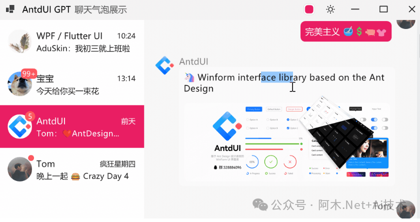 前端生态里成熟的 Ant Design 设计体系,凭借简洁简约的视觉风格、统一的交互规范、舒适的色彩搭配,早已成为主流 UI 标杆,但长期缺少适配 WinForm 生态的轻量化落地方案。