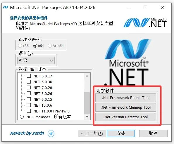 大家好,我们在日常使用windows系统运行某些软件或者游戏时,经常会遇到缺少.net组件,导致软件或游戏无法正常打开的情况,这是因为我们的电脑中缺少了这些软件所依赖的.net运行库导致,对于普通用户来说,在网上寻找对应的.NET运行库并不容易,今天我来给大家分享一款集成了几乎所有版本的.net运行库的离线安装包,让你可以一键解决系统缺少.NET运行库的难题。 ![]() 这是一款由国外大佬制作的.net运行库离线安装包,它整合了从2005至今的所有.net版本,并提供了.Net Framework的修复工具、清理工具、以及版本检测工具,为所有在windows系统中运行的软件以及游戏提供.net的运行环境支持。 ![]() 下载并解压软件之后,以管理员身份运行安装包。 ![]() 在软件的界面中可以自定义选择你所需要的.net运行库版本,如果你不确定需要哪个版本,也可以选择全部安装。 ![]() 在软件右侧还附带了.Net Framework的修复工具、清理工具、以及版本检测工具,让你能轻松对电脑上所安装的.net运行库进行维护,选择好之后点击安装即可。 ![]() 我们只需要等待软件自动安装完成。 ![]() 以上就是这款.net运行库离线安装包的详细介绍,如果电脑中也存在.net运行库缺失的问题,那么可以通过这款工具进行修复,它彻底地解决windows系统因为缺少.net运行库导致软件和游戏无法正常运行的问题。 软件获取(2.7GB): https://pan.baidu.com/s/1kaLOZoiKe1HF0xHr2bqKug?pwd=8808 https://pan.quark.cn/s/c2cadd60b321 https://pan.xunlei.com/s/VOrMcq4RXuiq3U095r3IqnuEA1?pwd=r9pk# 阅读原文:https://mp.weixin.qq.com/s/GPeUlZq62YWQBRwAbCzGPg 该文章在 2026/4/29 15:22:23 编辑过 |