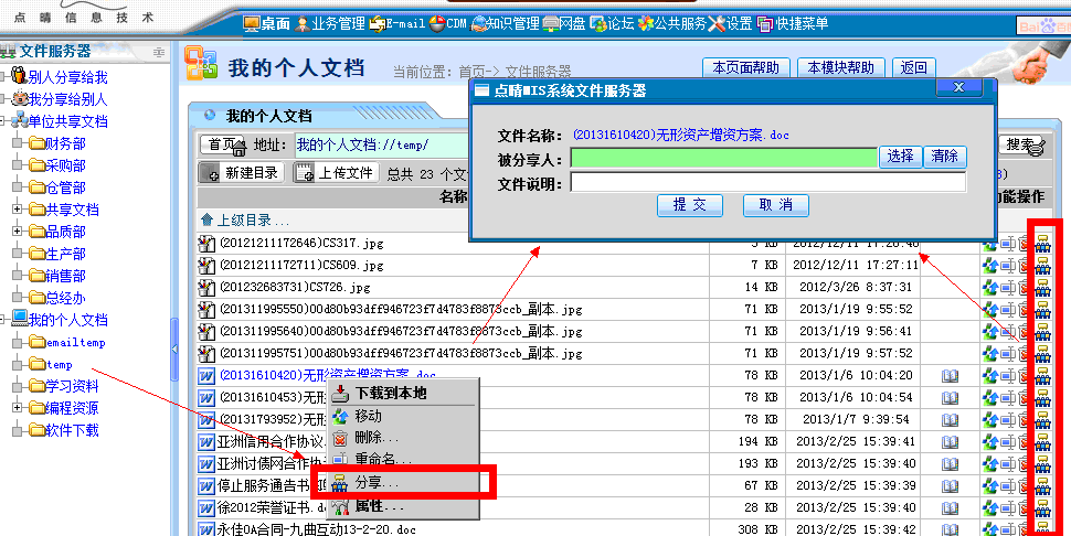 还有另外一个方法,安装点晴MIS系统的PC客户端:点晴MIS信息通,可以快速的完成网盘文件的相关管理: