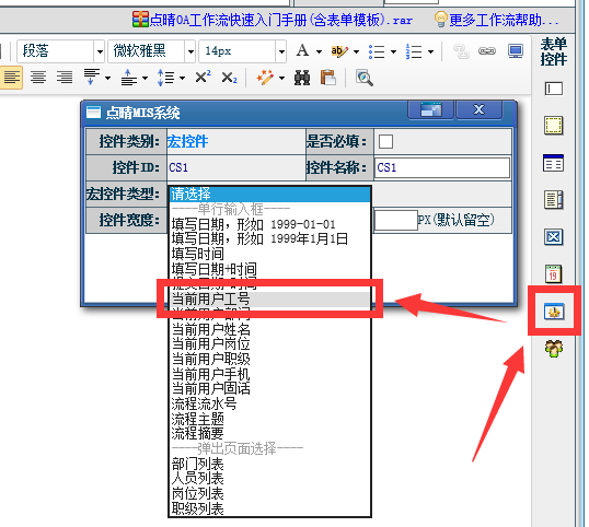 [点晴永久免费OA]自建模板有当前用户工号控件吗?