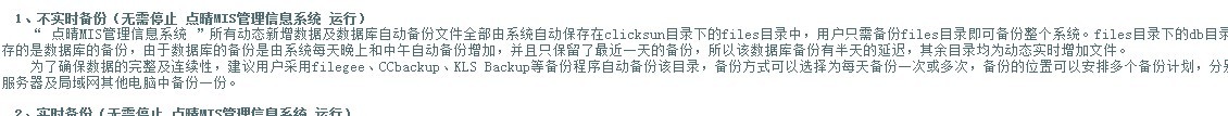 爱“不过期”(116809511) 09:59:01 OA的备份在那个文件夹下 点晴客服(1071289759) 09:59:16 d:\clicksun 爱“不过期”(116809511) 09:59:53 能说下具体哪个文件吗? 点晴客服(1071289759) 10:01:47 d:\clicksun\files和d:\clicksun\hmailserver\data这两个目录是最重要的,备份的话是必须的,其余目录都是代码,可以随时从点晴官网下载到。 d:\clicksun\files是所有OA用户上传文档的备份 d:\clicksun\hmailserver\data是用户Email附件的备份 爱“不过期”(116809511) 10:04:33 明白了 点晴客服(1071289759) 10:04:59 其余目录可以不备份,但如果空间足够的话那就优选将D:\clicksun整个目录备份,这样就不用区分目录了。 该文章在 2013/7/12 10:09:53 编辑过 |