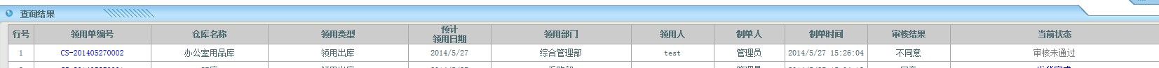 低值易耗品管理: 新建了个领用单。然后用管理员审核 点了个不同意。