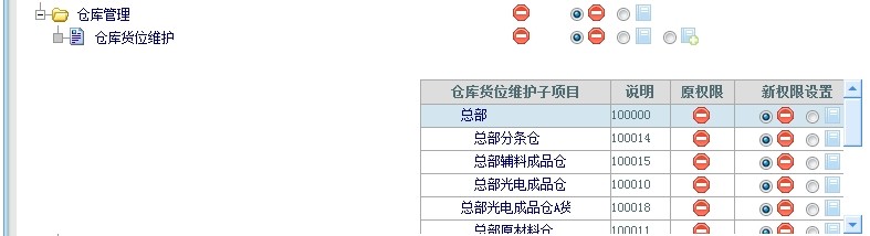 例如上面开放的某权限是允许该岗位进行入库确认操作,但一个企业中的仓库分成了很多个:成品仓(甚至更细分为:成品1仓、2仓。。。)、原材料仓(或细分为:原材料1仓、2仓。。。)、半成品仓、五金仓、办公用品仓、模具仓等。很明显,各个仓库之间彼此都有仓管员,不同的仓库员正常情况下应该只能操作本人所负责仓库的出入库,例如五金仓的员工不应该能够操作成品仓的出入库。所以这些仓库在ERP系统中就被视为受控资源,需要针对不同的岗位单独对其所负责的仓库赋予权限。