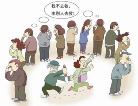3.责任分散效应 1964年3月13日夜3时20分,在美国纽约郊外某公寓前,一位叫朱诺比白的年轻女子在结束酒巴间工作回家的路上遇刺。当她绝望地喊叫:“有人要杀人啦!救命!救命!”听到喊叫声,附近住户亮起了灯,打开了窗户,凶手吓跑了。当一切恢复平静后,凶手又返回作案。当她又叫喊时,附近的住户又打开了电灯,凶手又逃跑了。当她认为已经无事,回到自己家上楼时,凶手又一次出现在她面前,将她杀死在楼梯上。在这个过程中,尽管她大声呼救,她的邻居中至少有38位到窗前观看,但无一人来救她,甚至无一人打电话报警。这件事引起纽约社会的轰动,也引起了社会心理学工作者的重视和思考。人们把这种众多的旁观者见死不救的现象称为责任分散效应。对于责任分散效应形成的原因,心理学家进行了大量的实验和调查,结果发现:这种现象不能仅仅说是众人的冷酷无情,或道德日益沦丧的表现。因为在不同的场合,人们的援助行为确实是不同的。当一个人遇到紧急情境时,如果只有他一个人能提供帮助,他会清醒地意识到自己的责任,对受难者给予帮助。如果他见死不救会产生罪恶感、内疚感,这需要付出很高的心理代价。而如果有许多人在场的话,帮助求助者的责任就由大家来分担,造成责任分散,每个人分担的责任很少,旁观者甚至可能连他自己的那一份责任也意识不到,从而产生一种“我不去救,由别人去救”的心理,造成“集体冷漠”的局面。如何打破这种局面,这是心理学家正在研究的一个重要课题。