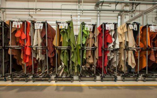 随后,这些裁剪完毕的皮革会被固定到内饰板上。值得一提的是,在这里皮革的味道环绕整个车间,距离车间近五十米的距离就能够闻到皮革的气味。