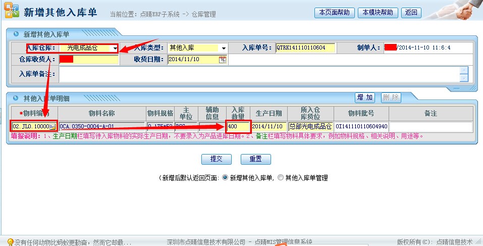 点晴模切ERP仓库管理—仓库入库管理之新增其他入库管理操作