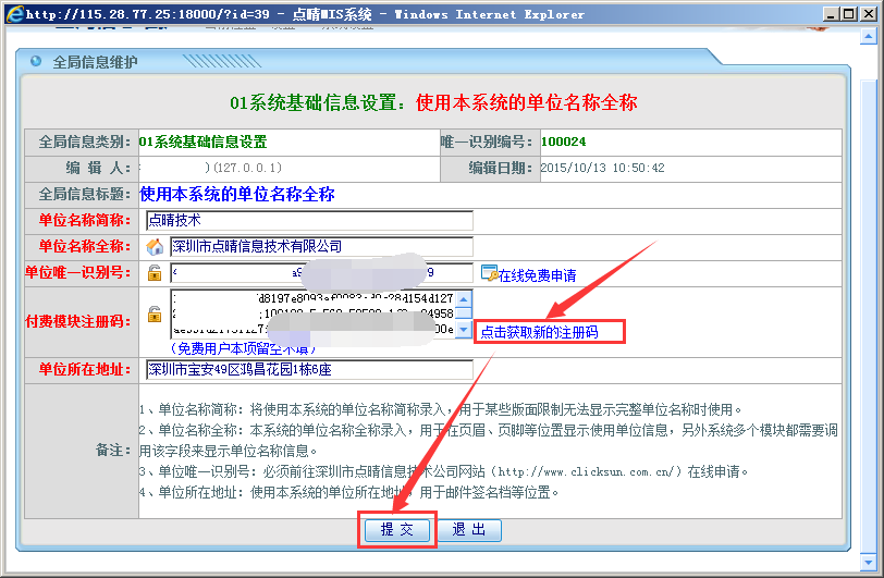 点击“获取新的注册码”自动生成,点击“提交”即可 点晴模切ERP更多信息:https://moqie.clicksun.cn,联系电话:4001861886 该文章在 2015/11/4 9:25:03 编辑过 |
