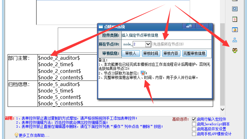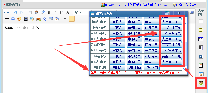 点晴永久免费OA工作流模板插入的审核信息支持同一个节点会审显示了,增加了一个宏控件字段专门用于有多人并行会审节点的审核信息展现需求