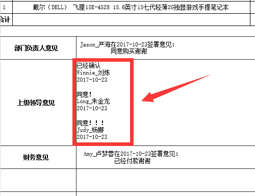 2016-5-25升级说明: 点晴OA工作流模板插入的审核信息支持同一个节点会审显示了,增加了一个宏控件字段专门用于有多人并行会审节点的审核信息展现需求。 ![]() 按照审核层级插入审核人信息。 按照审核人所在节点插入审核人信息。 特别注意: 对于有多人并行会审、所有上级主管审核、或条件跳转审核等特殊需求的审核节点,必须使用“完整审核信息”,此时只能将审核人信息放在同一个位置,无法拆分显示,最好将此节点所在页面上的说明改为:审核人意见或上级领导意见之类,效果如下: 该文章在 2020/4/8 9:27:08 编辑过 |