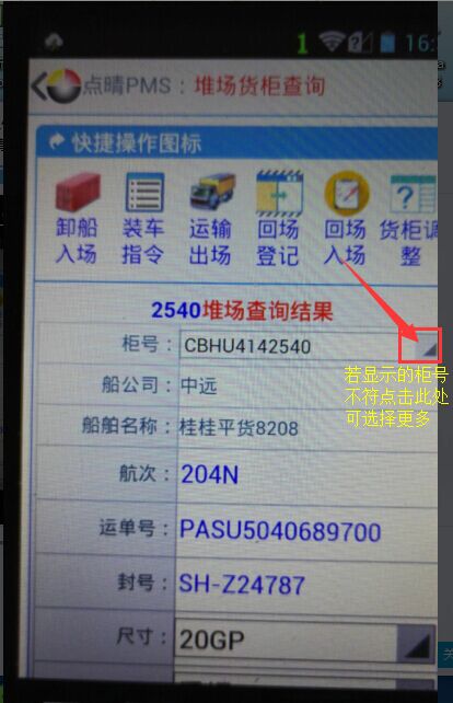 若显示的柜号不是目标柜号,点击上图所示图标位置可选择更多;