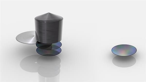制备好的单晶硅锭直径约在300mm左右,重约100kg。而目前全球范围内都在生产直径12寸的硅圆片,硅圆片尺寸越大,效益越高。 4、硅锭切片 将制备好的单晶硅锭一头一尾切削掉,并且对其直径修整至目标直径,同时使用金刚石锯把硅锭切割成一片片厚薄均匀的晶圆(1mm)。有时候为了定出硅圆片的晶体学取向,并适应IC制作过程中的装卸需要,会在硅锭边缘切割出“取向平面”或“缺口”标记。