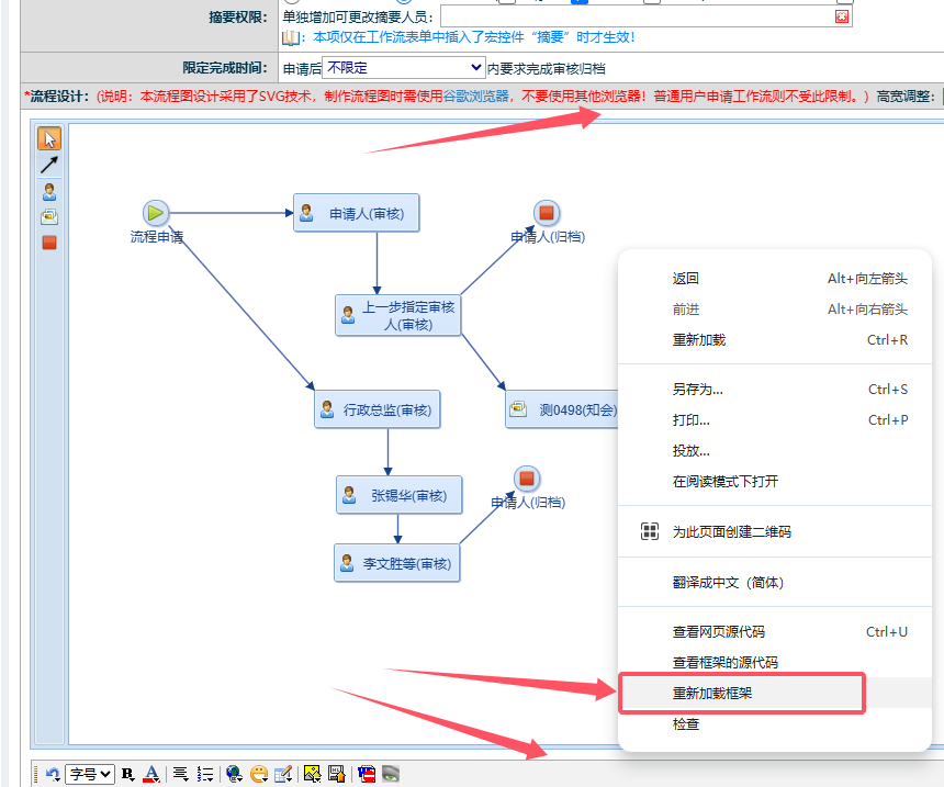 如果流程比较复杂,或者当前电脑硬件资源不足,或者使用的浏览器不是谷歌浏览器,可能会导致流程设计器加载流程失败。解决办法:1、确保当前浏览器一定是谷歌浏览器,如果不是,前往“http://17279.oa22.cn”下载安装。2...