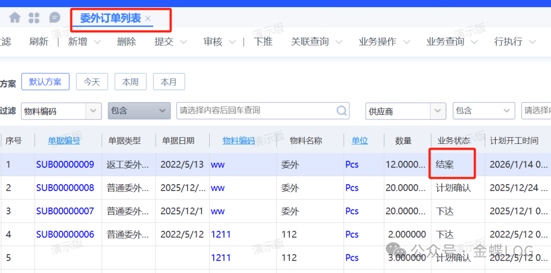 Q问题描述你是不是一直疑惑,生产订单的【业务状态】字段这么多值,分别都是表示什么意思呢?A问题解答首先生产订单里面业务状态一共有7个值;分别是:计划、计划确认、下达、开工、完工、结案、结算。分别表示什么意思?一、计划在新增生产订单的时候,系统默认值就是‘计划’状态;在工单未审核前状态都不会改变。这种状态不能下推领料入库...