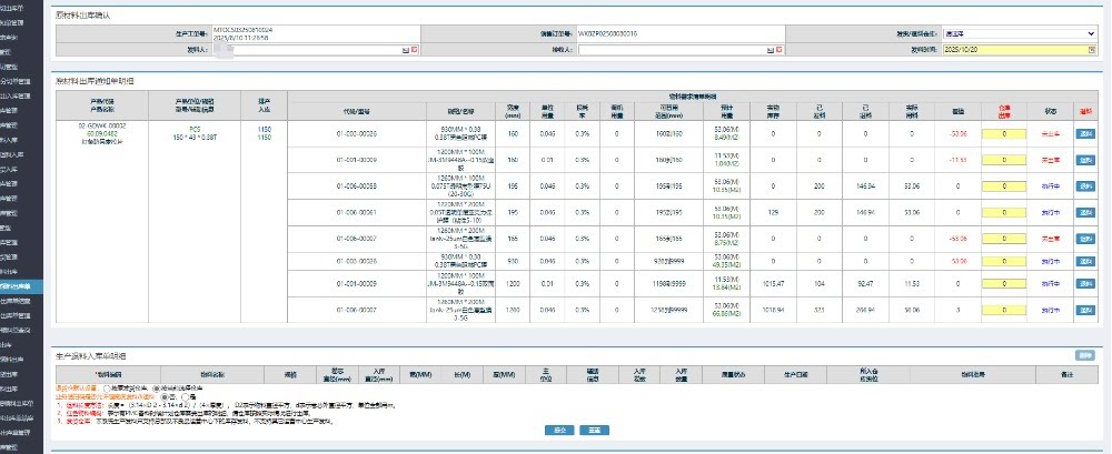 答:针对这个问题可以先在“系统管理”》“物料信息维护”中找到对应物料,然后对物料信息进行编辑,如:物料厚度、主条码编号和服辅助条编码进行修改。