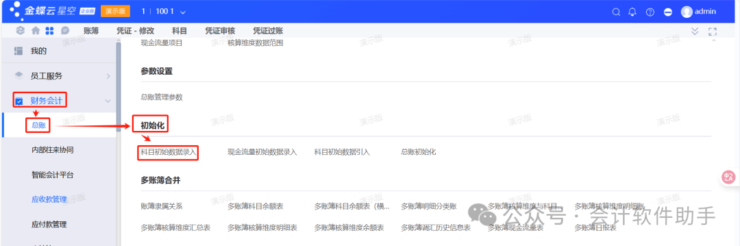 整体流程:基础设置(核算体系、账簿设置、系统参数和基础资料的设置)→总账初始化→日常业务(凭证录入、审核、过账等)→期末处理(期末调汇、结转损益、结账)一、基础设置(参照相关文档);二、总账初始化1、初始数据的录入(1)手工录入期初数据:财务会计→总账→初始化→科目初始数据录入,录入完之后点保存,然后再点试算平衡;(注...