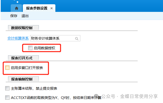 1报表【业务场景】:财务报表平台,基于类EXCEL报表编辑器,通过快速报表向导、灵活的取数公式,帮助用户快速、准确地编制企业对外会计报表(如资产负债表、利润表、现金流量表)以及各类财务管理报表(如管理费用明细表)。【用户角色】:财务经理【功能菜单】:【财务会计】->【报表】2基础设置2.1设置系统参数【业务场景】:报...