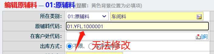 点晴ERP-物料代码不能编辑的原因说明