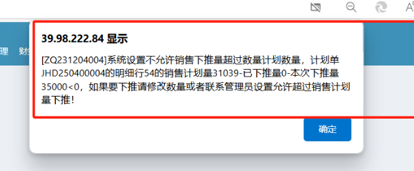 弹出窗口提示:系统设置不允许销售下推量超过数量计划数量,如何解决?