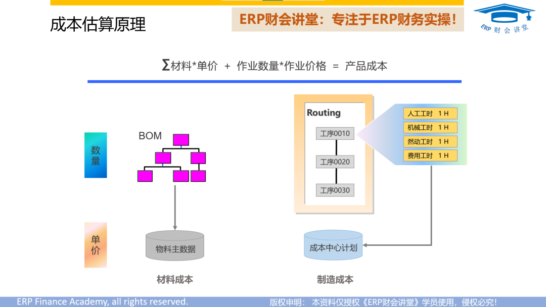 标准成本是SAP中重要成本数据,新增产品时都需要估算其标准成本。怎么估算?根据什么估算?估算的原理是怎样的?如何发布标准成本?有哪些注意事项?这些,我们在《CO成本管理》课程中详细介绍和演示。这里,我们给大家介绍如何分析估算出来的标准成本。产品的标准成本,可用于销售定价、目标成本控制等。标准成本中材料成本是多少?人工是...