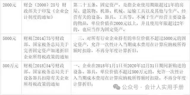 固定资产折旧年限和金额如何确定?有的同学说2000元、有的同学说5000元,还有的同学说500万以下的应该一次性计入。各说纷纭,其实谁都没有错。固定资产的金额标准实操中我们听到的那些2000、5000、500万从何而来呢?由上图所知,固定资产的金额既有会计制度的要求,也有财税政策的需求,那会计做账应该按照哪个要求呢?大...