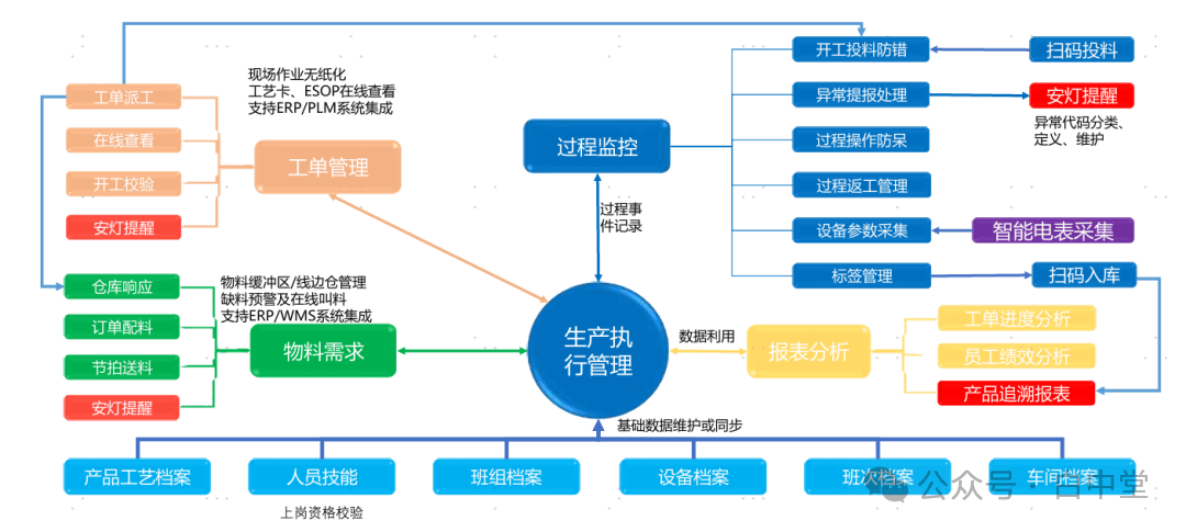 在现代制造业中,生产过程的精细化管理是企业提高效率、保证质量的关键。某知名MES系统的生产执行管理示意如下图。再进一步可按照颜色块和功能布局,把生产过程分为四大阶段,N个控制点。白中堂命名为:基础数据管理、生产准备、生产执行、产后分析。一、生产过程的四个核心阶段1.基础数据管理阶段:打好生产管理的地基如果把生产过程比作...