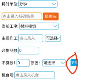 PDA移动终端操作时,点击“更多”按钮,就会显示多个不良原因选项。