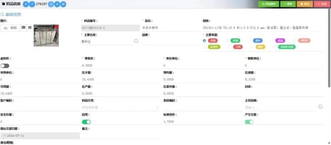 操作步骤:系统管理——物料管理——物料信息维护;用筛选条件查询到对应的资料:如下图示: