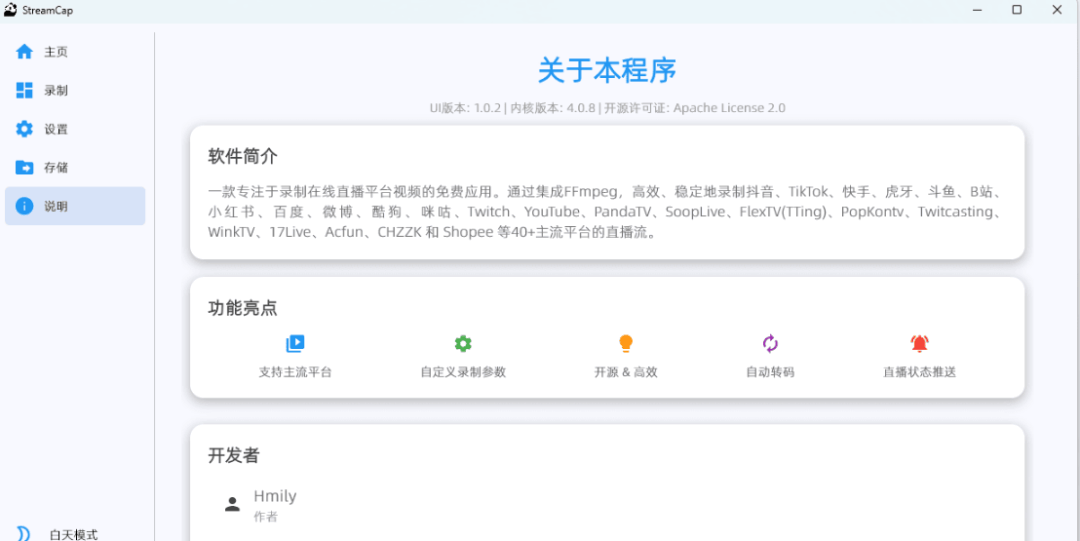 StreamCap是一个基于FFmpeg和StreamGet的多平台直播流录制客户端,覆盖40+国内外主流直播平台,支持批量录制、循环监控、定时监控和自动转码等功能。百度网盘:链接:https://pan.baidu.com/s/1F1rdb5e4I0MS4XIBQdqsag?pwd=6666提取码:6666