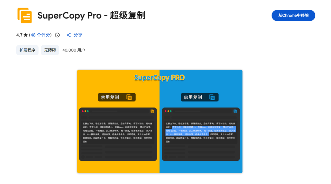 1.supercopy是不是经常遇到很多网站不允许你复制的情况。直接打开这款插件,就可以一键接触禁止复制,几乎所有网站都能用。2.ublockorigin这是个神奇的网页去广告神器,除了常规的网页,搜索引擎的广告能去除。它还可以去除常见的电影电视剧的视频平台里的广告。3.globalspeed这是一个视频加速插件,你...
